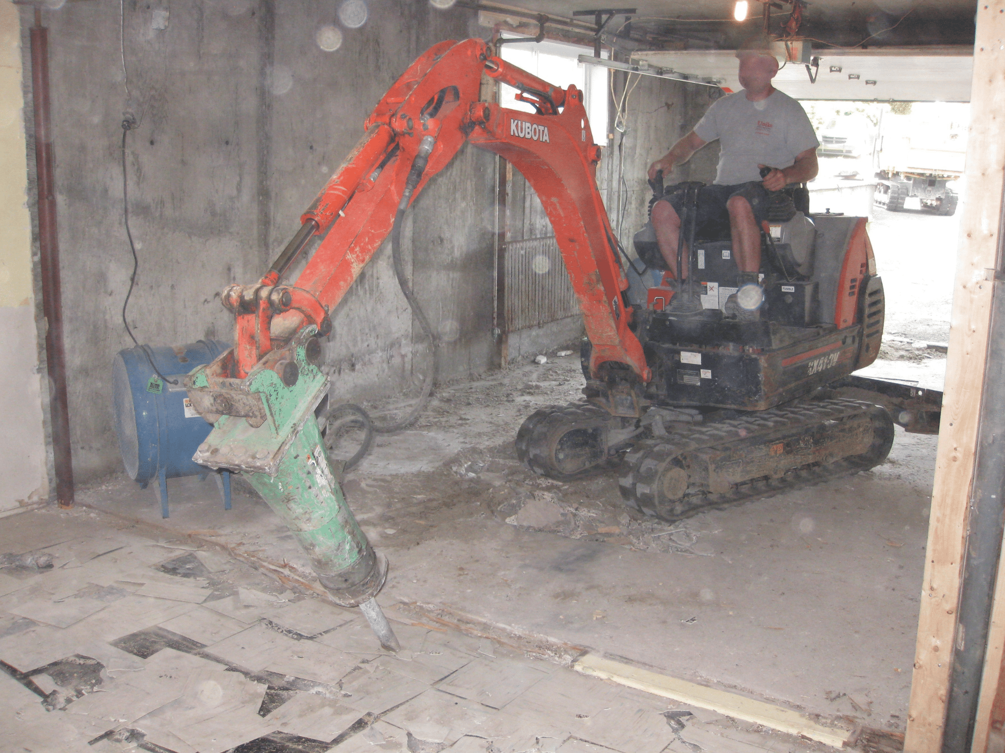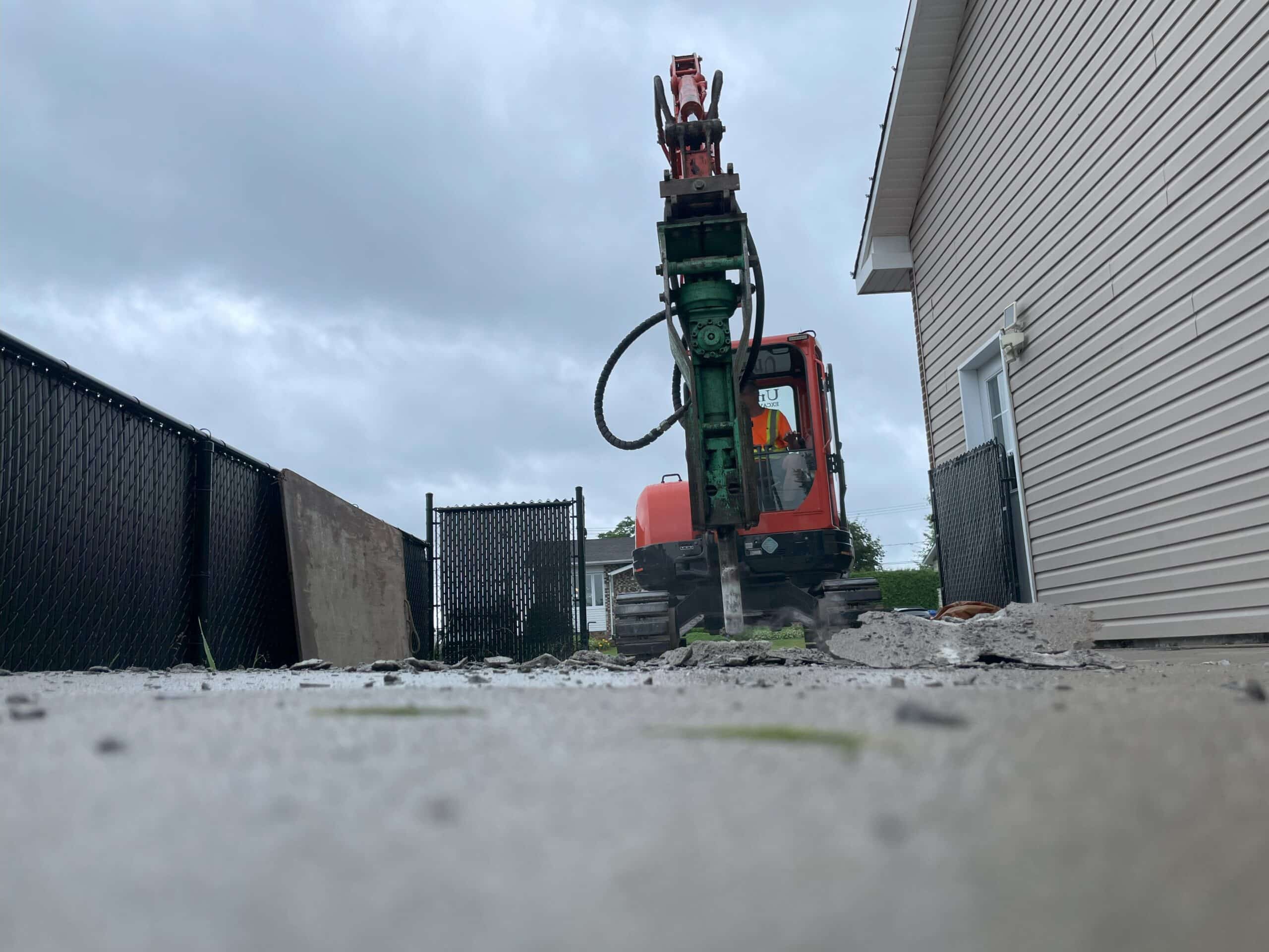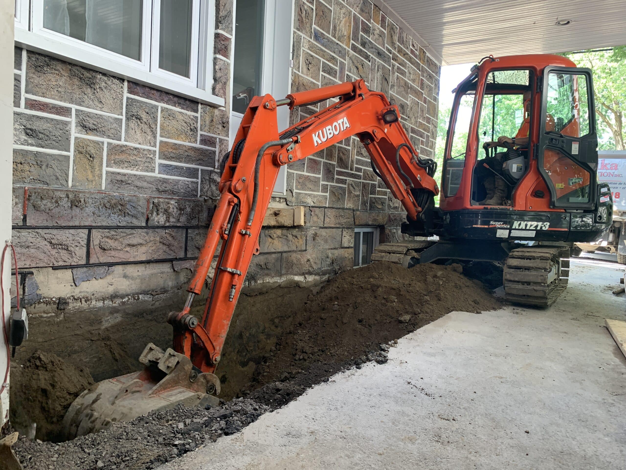 Tranchées, drains, nivellement, préparation de terrain, réparation de fondation, excavation pour pieux, démolition de béton et de petits bâtiments etc.